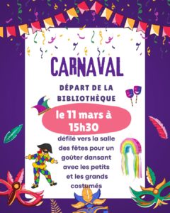 Rendez-vous pour les enfants costumés (et pourquoi pas les parents aussi!) à la bibliothèque le mercredi 11 mars 15h30. Le défilé montera rue Jacques Cartier […] - Association communale : soirée à thème