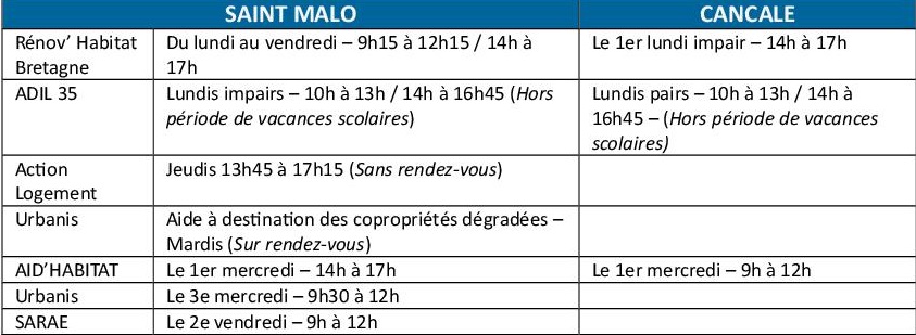 Pour faciliter l’accès à ce service, des permanences de proximité sont proposées à Saint-Malo et à Cancale, en partenariat avec les acteurs locaux de l’habitat.