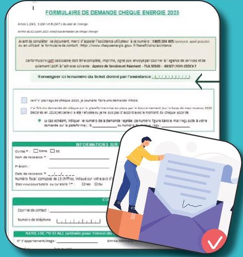 - en ligne : une plateforme sera disponible à partir de mi-octobre 2025 jusqu’au 28 février 2026 sur le site du chèque énergie.