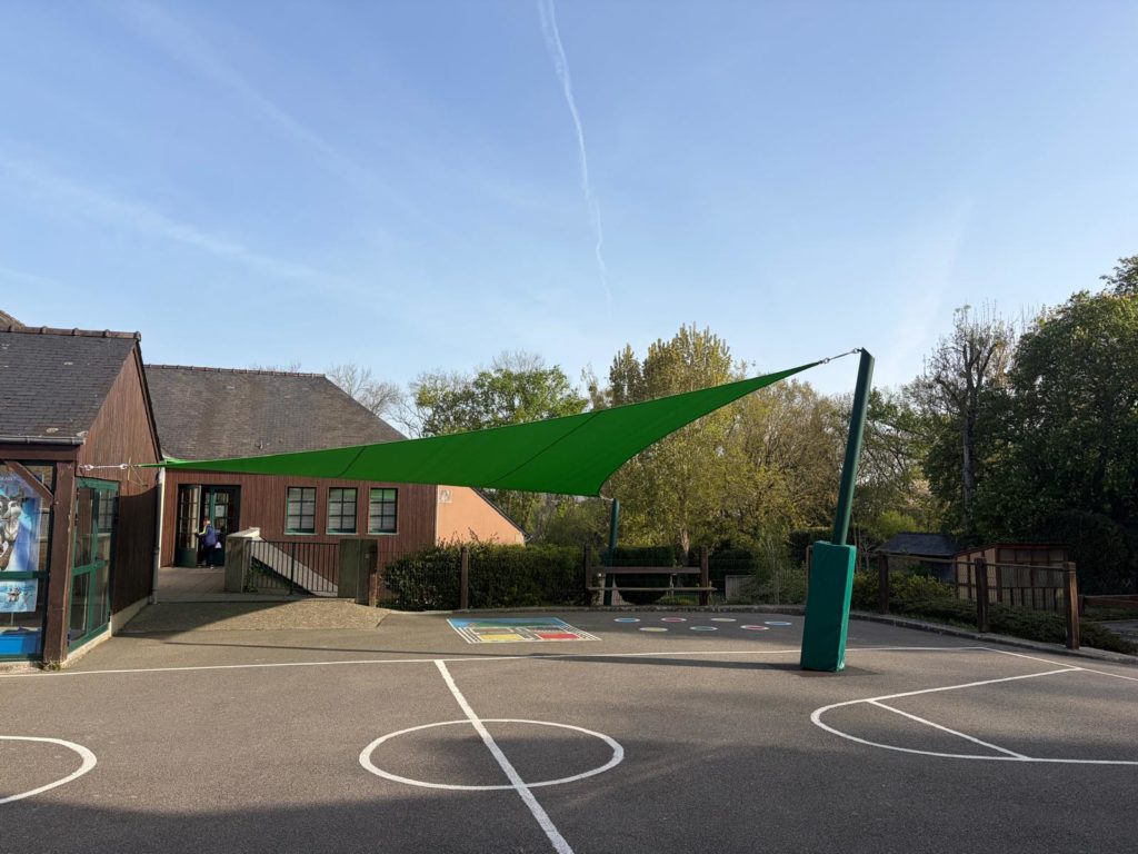 La municipalité dans le cadre du réaménagement de la cour en concertation avec l’école a décidé de faire installer par la société Solamena une voile d’ombrage. Les enfants pourront ainsi pleinement profiter des beaux jours à l’ombre de cet voile.